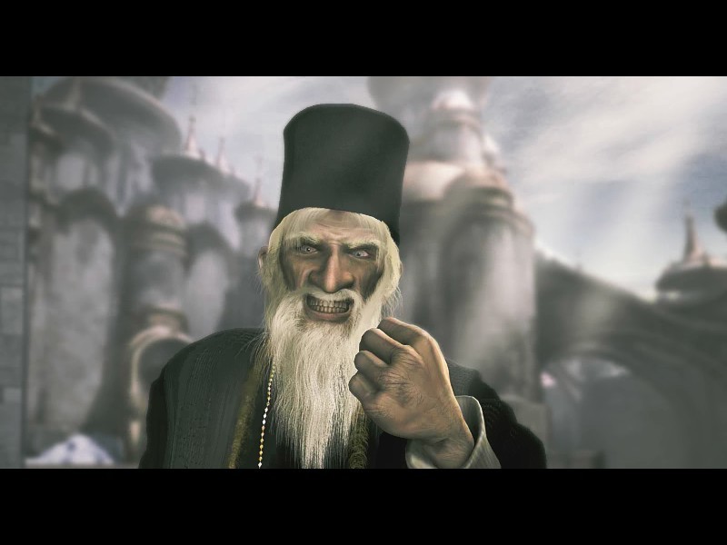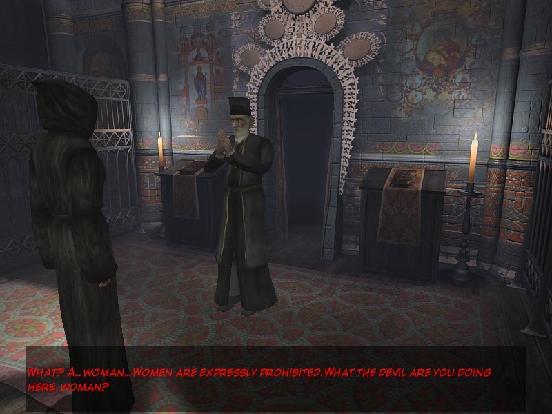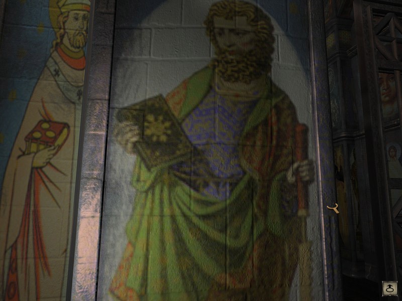 Суровый "патриарх" монастыря. А сзади, надо понимать, Царские врата... ага, с "фреской", срисованной с яйца Фаберже.