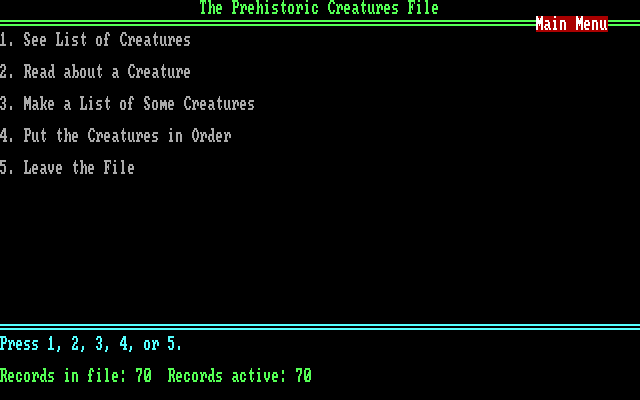 Главное меню (версия CGA)
