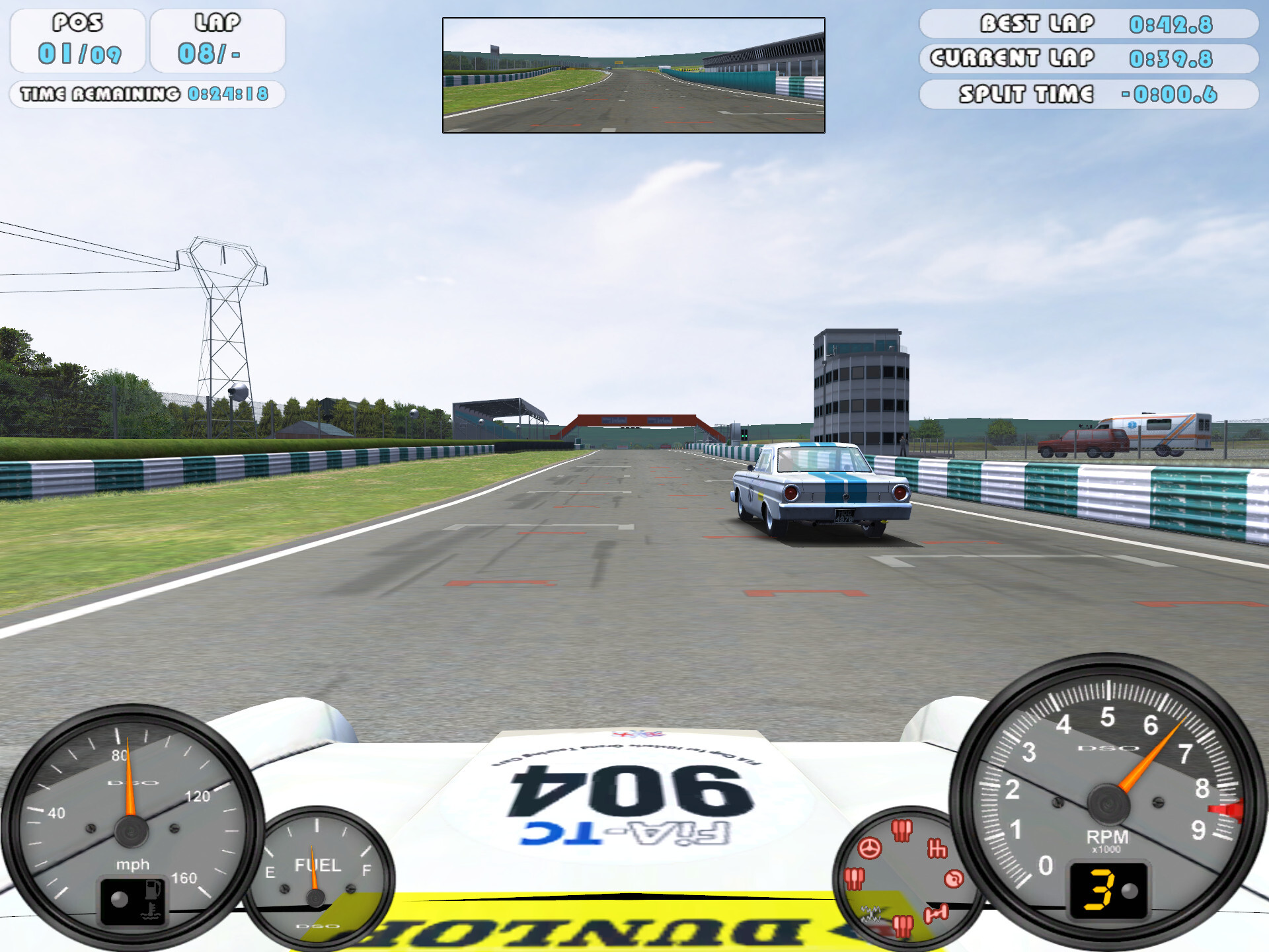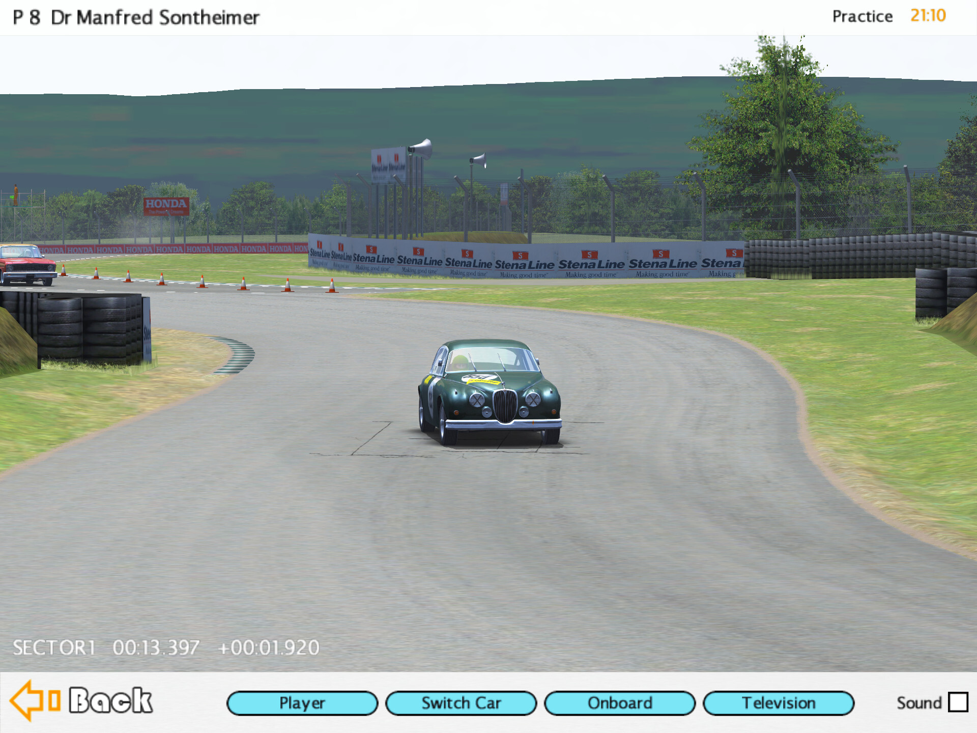 Перед крутым поворотом машины собрались группкой; кажется, сейчас Форд будет закрывать траекторию Ягуару