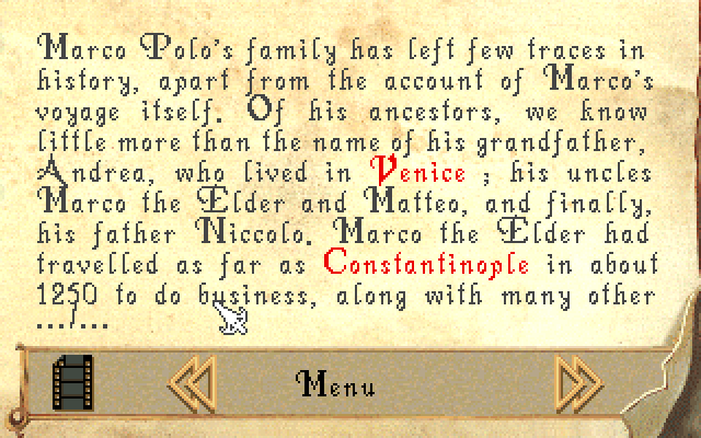 Заставка игры: Марко с отцом и дядей отправляется в своё первое путешествие