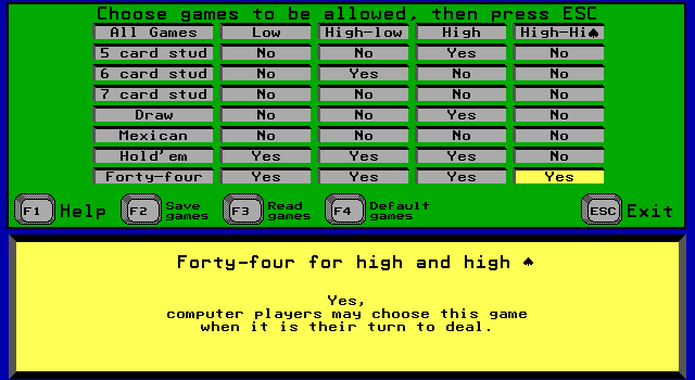 Выбираем задействованные варианты "покера"
