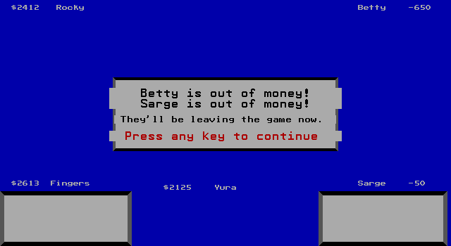При отсутствии денег игрок выбывает из игры