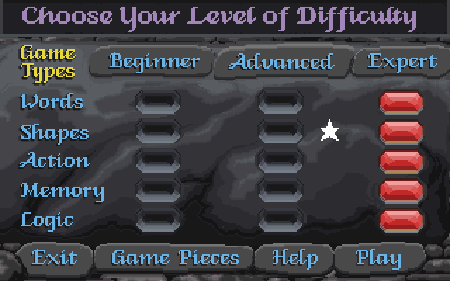 Для каждого типа загадок можно настроить уровень сложности