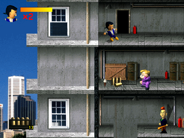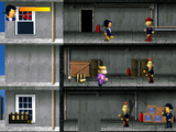 Среди противников появляется два новых типа, в том числе неуклюжие толстые тётеньки (на картинке - этажом ниже нас) с солидным запасом здоровья