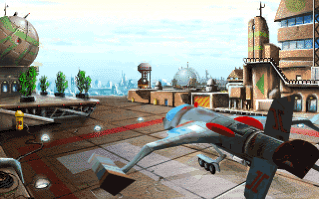 В дисковой версии тут вылетает кораблик, увешанный двигателями, как елка, - тут более традиционный