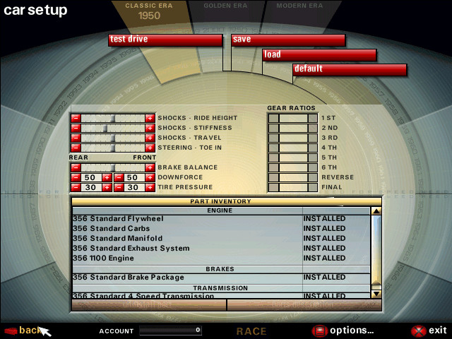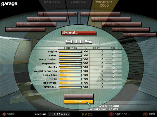 Меню Быстрой Гонки, выбор автомобиля