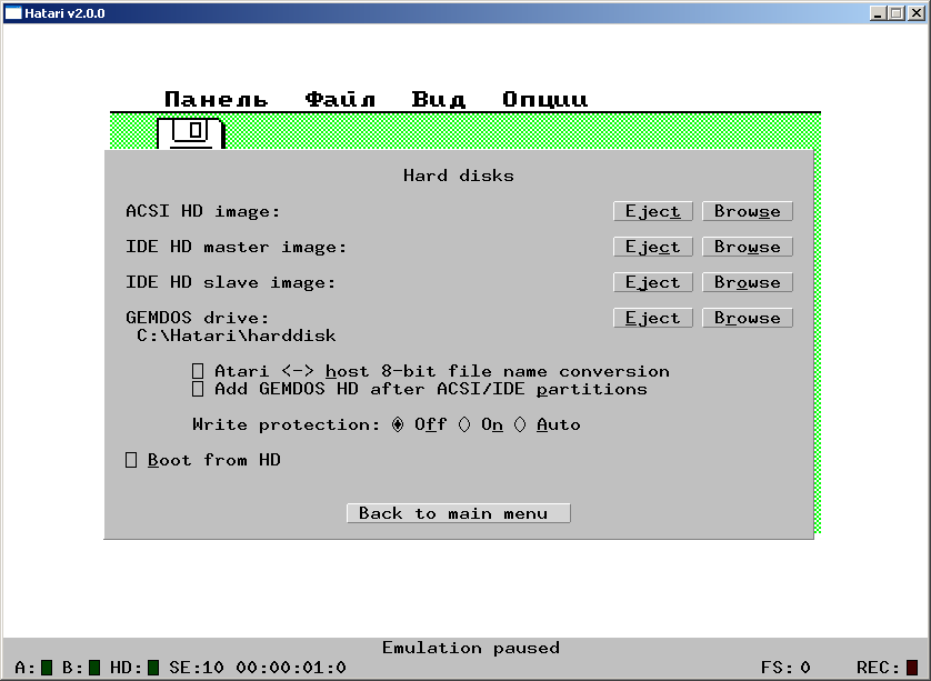 | 22:12, 16 октября 2024 | Hatari-6.png (файл) | 10 КБ | Эмулируемые жёсткие диски в Hatari. | 1 | |