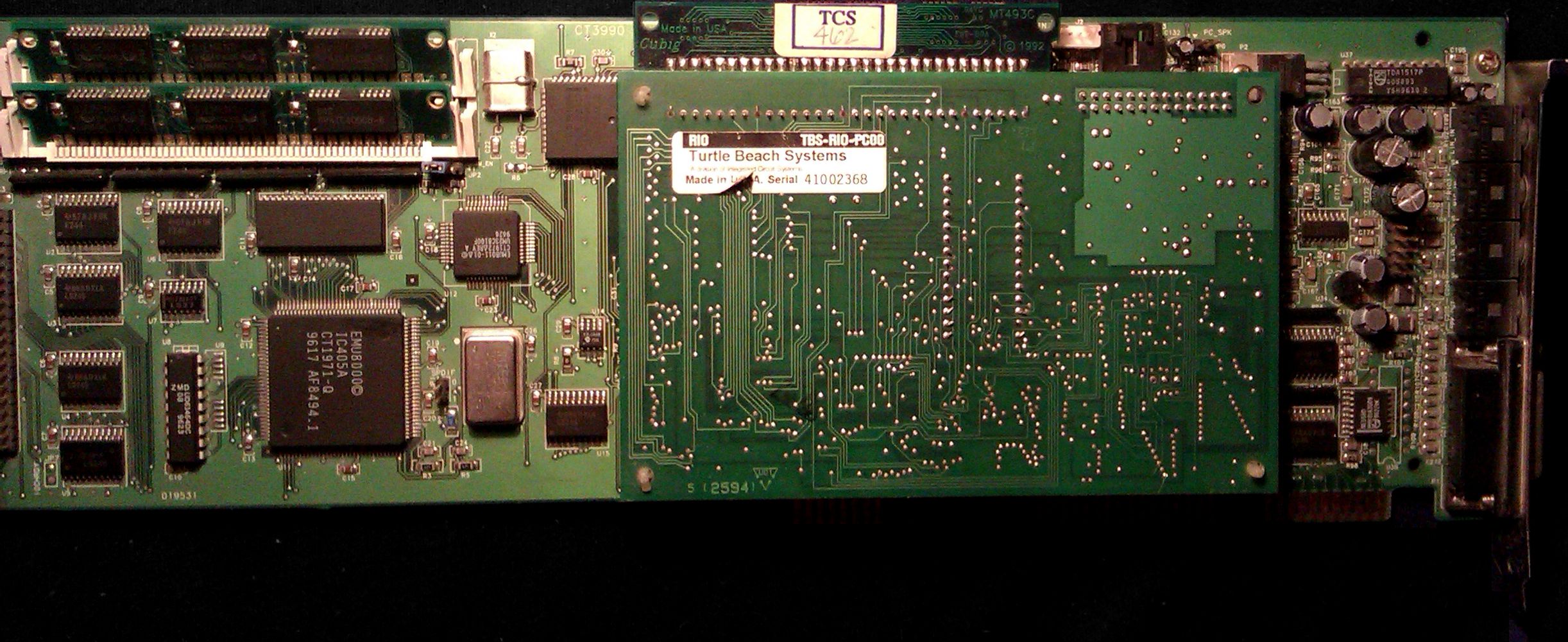 Звуковая карта Creative labs ™ Sound Blaster ® AWE32 © CT3990 с установленной дочерней платой Turtle Beach RIO
