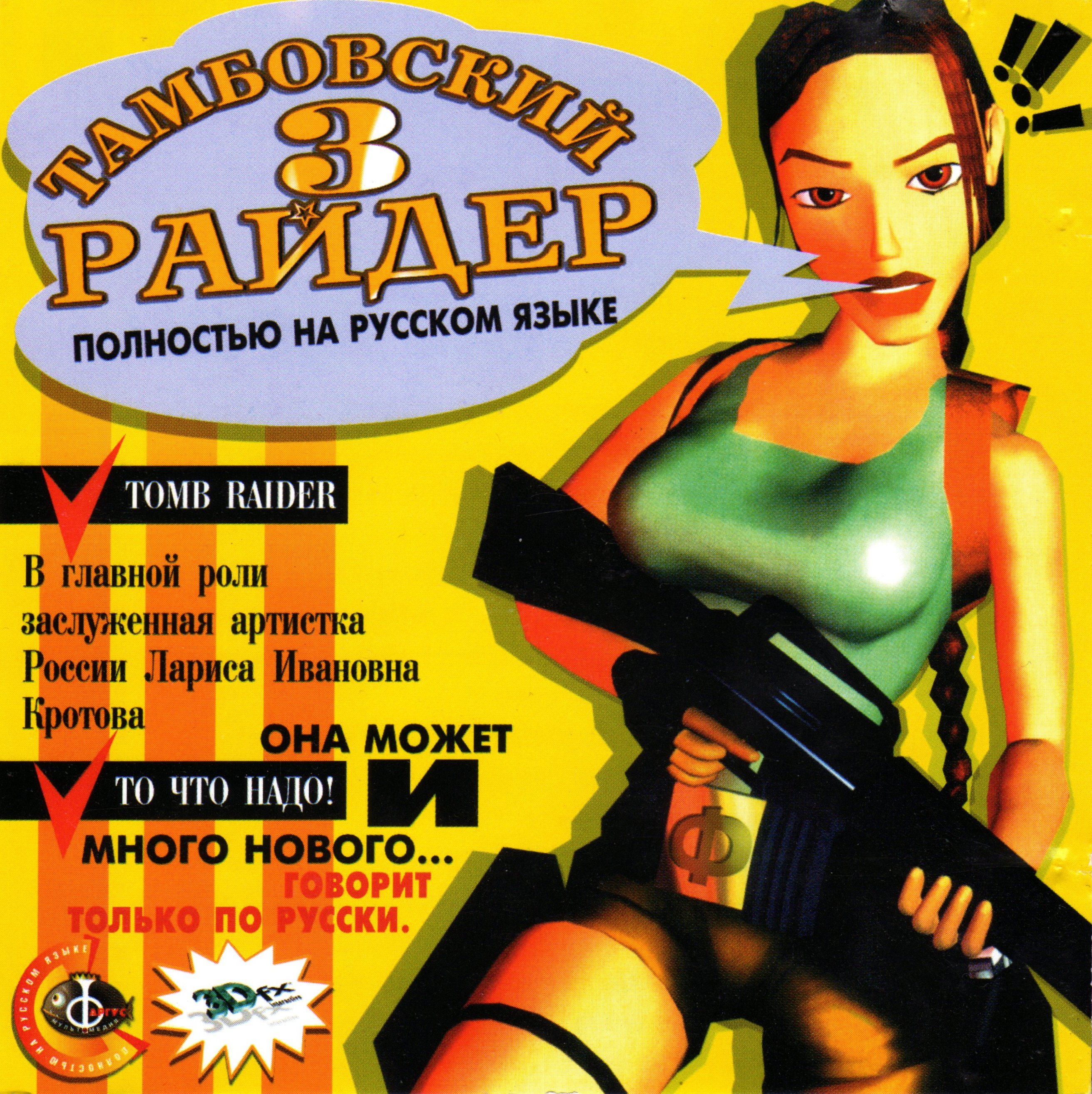 Передняя сторона обложки игры Tomb Raider 3, в издании от Фаргус. Уже переведенная название Тамбовский Райдер 3