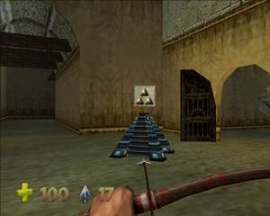 Выходим в коридор, справа видим последний портал Oblivion. Портал закрыт, так что идем дальше. В следующей комнате ходит Elite Guard. Проходим дальше и спускаемся по лестнице вот до такой площадки (рисунок 73):