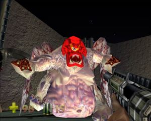 - Leaper– коричневый ящер, напоминающий Raptoid, только намного более противный. В них очень трудно попасть, они все время раскачиваются и прыгают, в том числе и по стенам. Встречается на уровнях 2 и 4.
