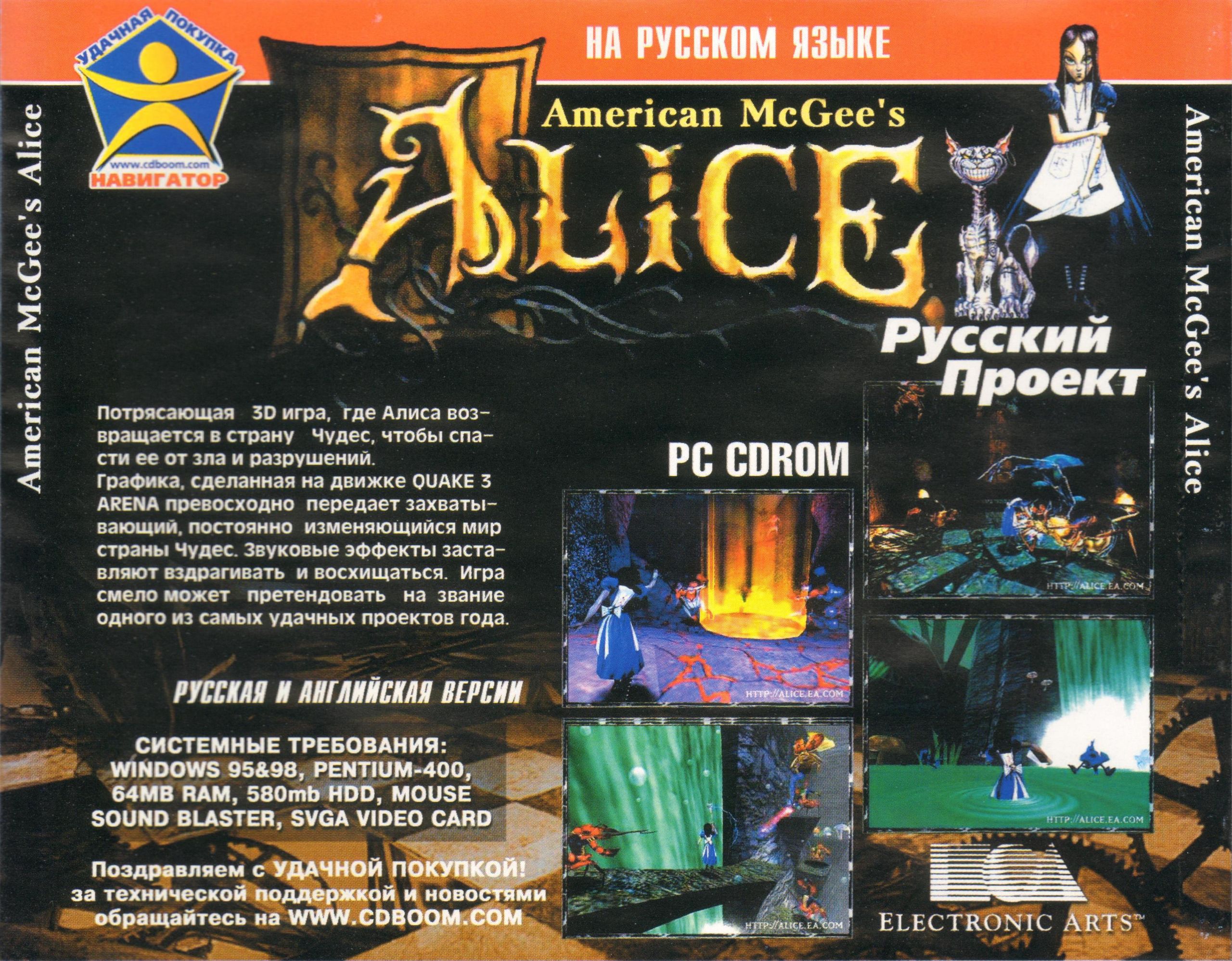Задняя обложка игры American McGee's Alice, в издании от Русского Проекта